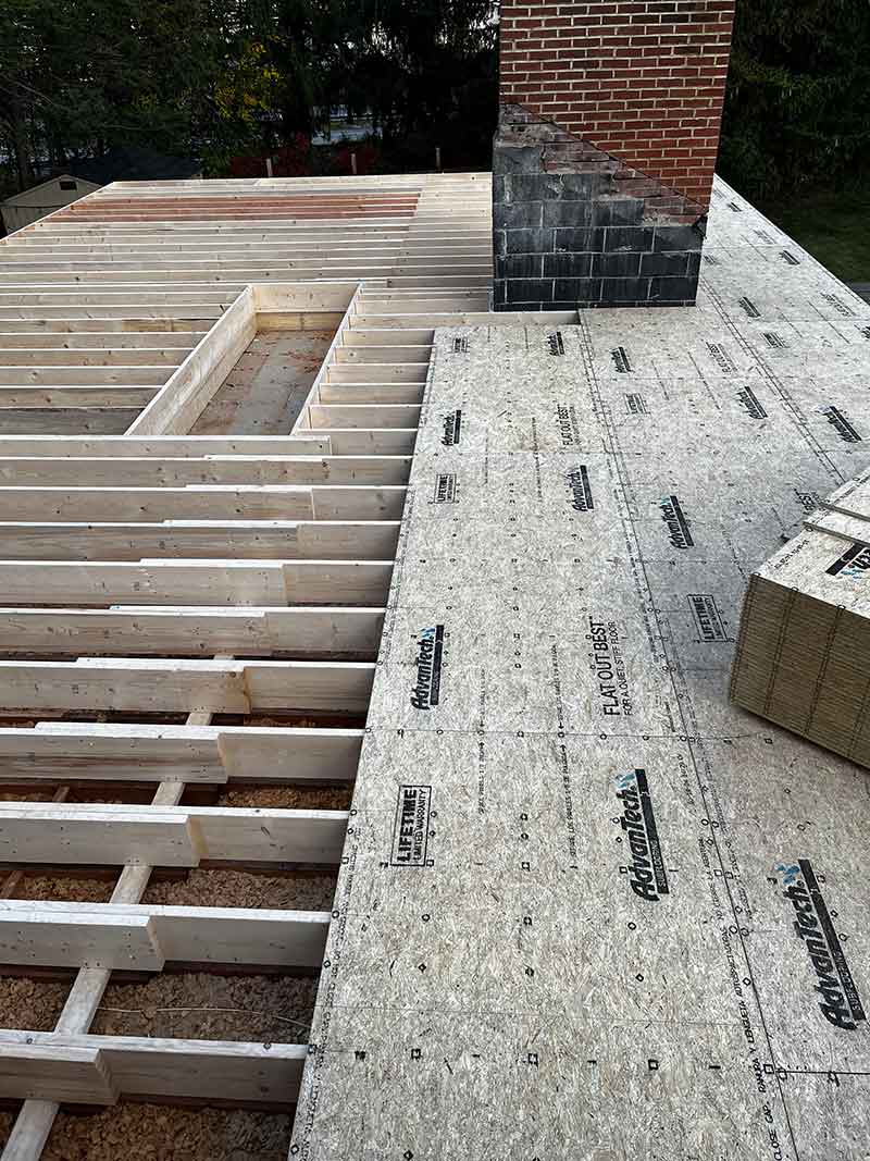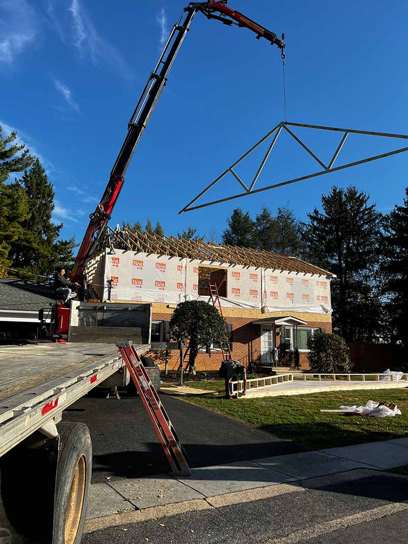 This is where the project really takes shape. Our framing team builds the structural framework for your new second story—walls, joists, and rooflines. This stage sets the foundation for everything that follows.